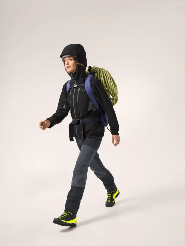 Whether it’s your first alpine climb or most technical-to-date, the Psiphon has you covered. Our women’s-specific Hybrid Mapping technology places fabrics where they’re needed most: durable, breathable softshell at the torso, shoulders, hood, and waist protects you from wind, rain, and rock and lighter, highly air permeable fabrics under the arms to dump heat during key moves.